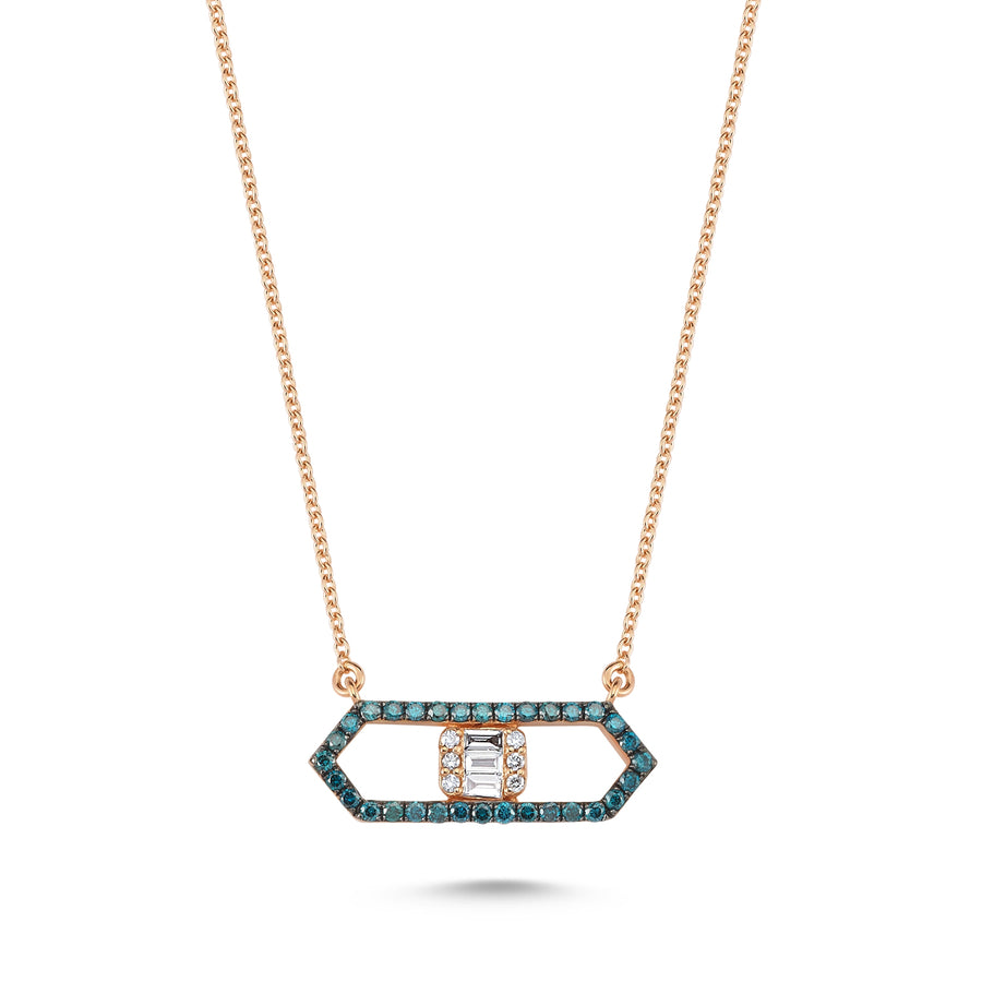 Baguette Geomi Rose Altın Mavi Pırlanta Kolye
