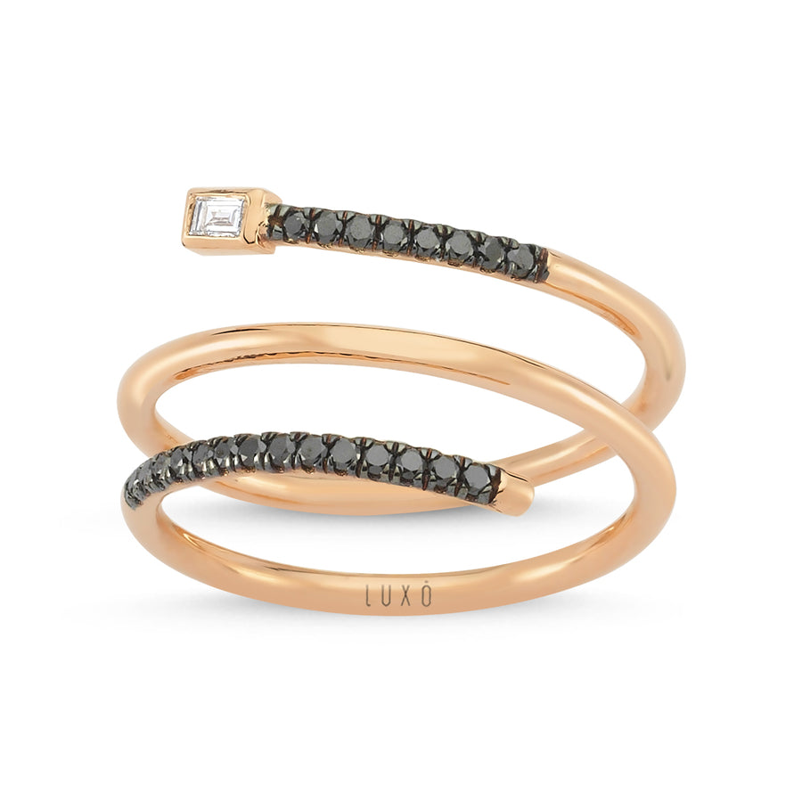 Baguette Rose Altın Snake Siyah Pırlanta Yüzük