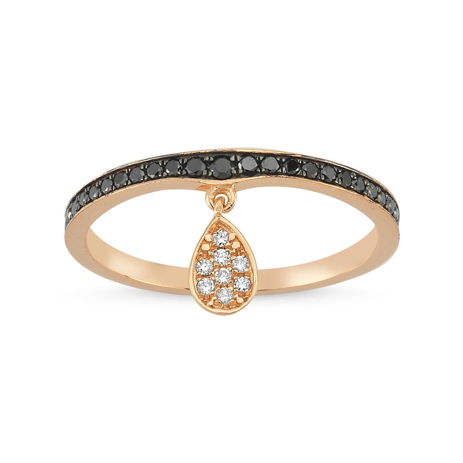 Geomi Rose Altın Damla Sallantılı Siyah Pırlanta Yüzük