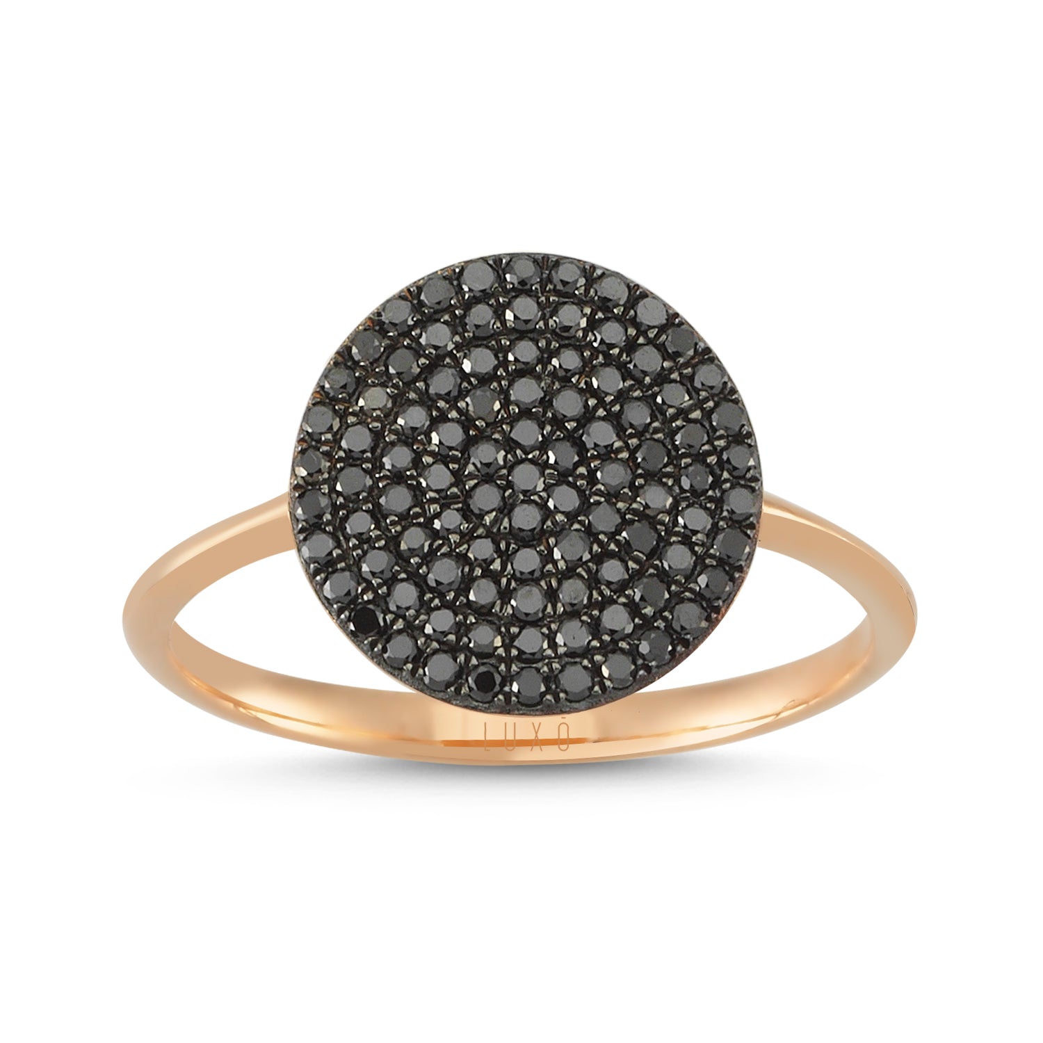 Halo Rose Altın Yuvarlak Siyah Pırlanta Yüzük