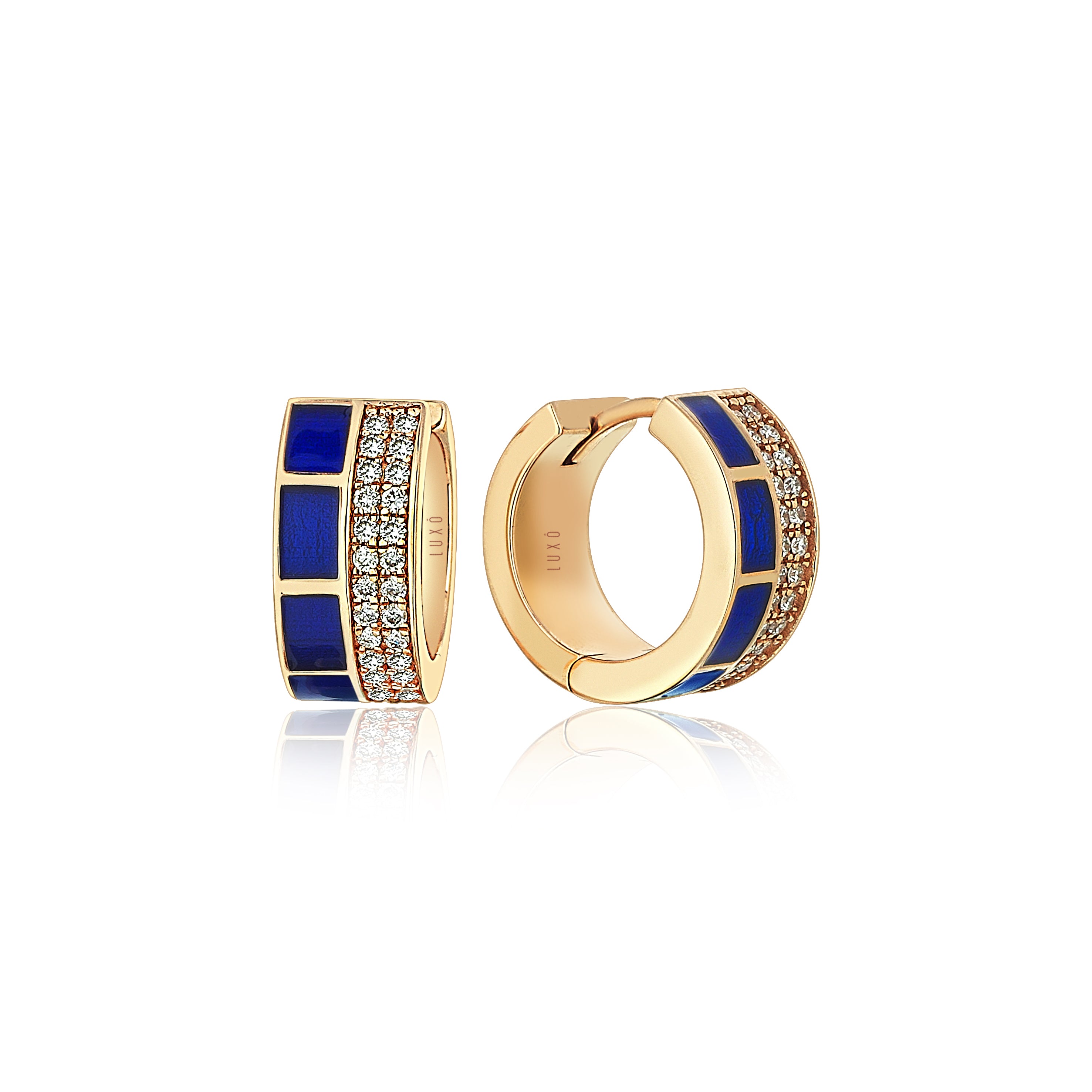 Locked Lacivert Mineli Pırlanta Halka Küpe