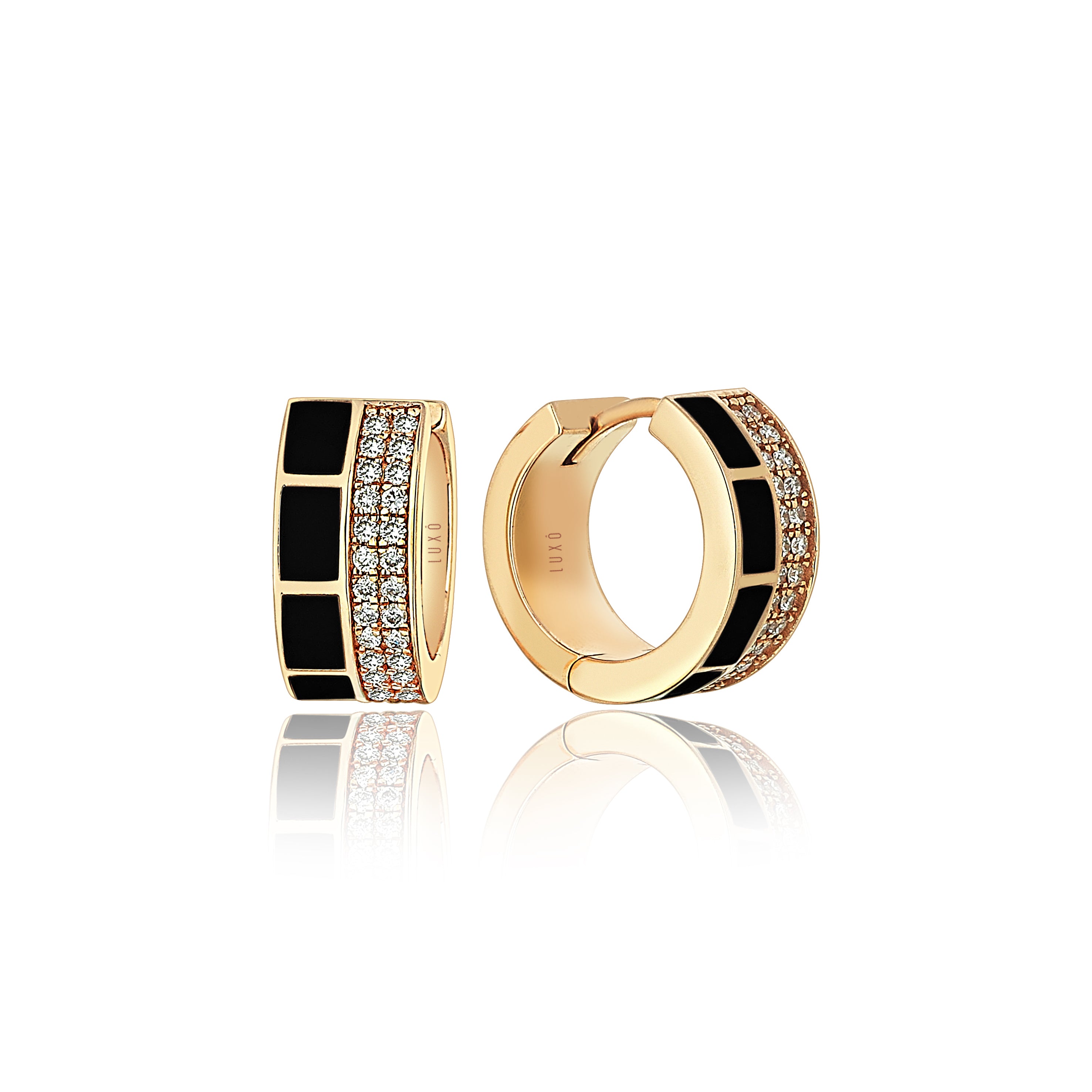 Locked Siyah Mineli Pırlanta Halka Küpe