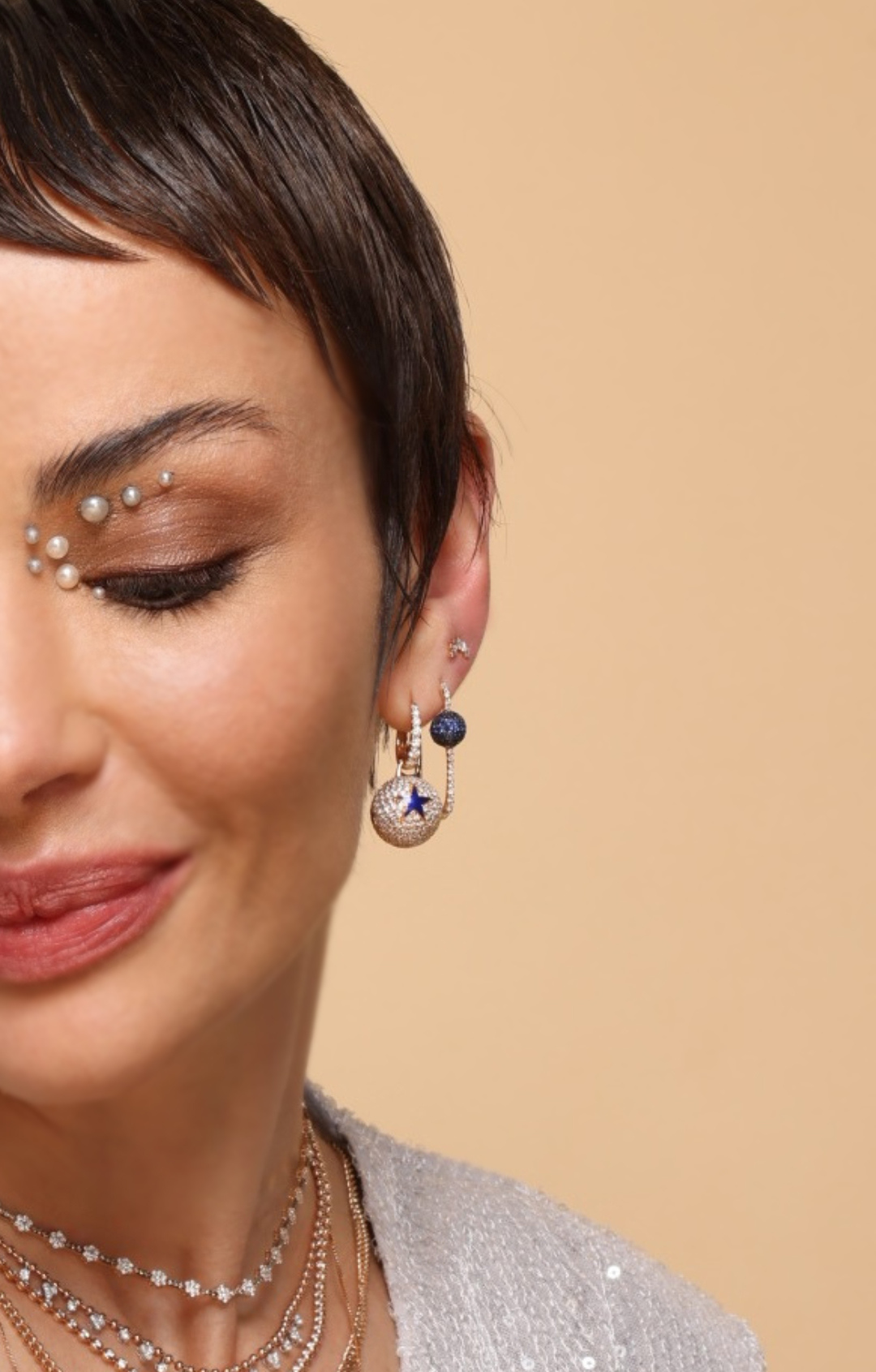 Gece göğünün büyüsünü takı tasarımına taşıyan Neolope Lacivert Mineli Yıldız Pırlanta Küpe, cesur ve ışıltılı bir stilin simgesidir. 18 ayar rose altın üzerine pavé tekniğiyle yerleştirilen beyaz pırlantalar, her hareketle zarif bir parıltı yaratırken; lacivert mine yıldız detayları derinlik ve anlam katar.