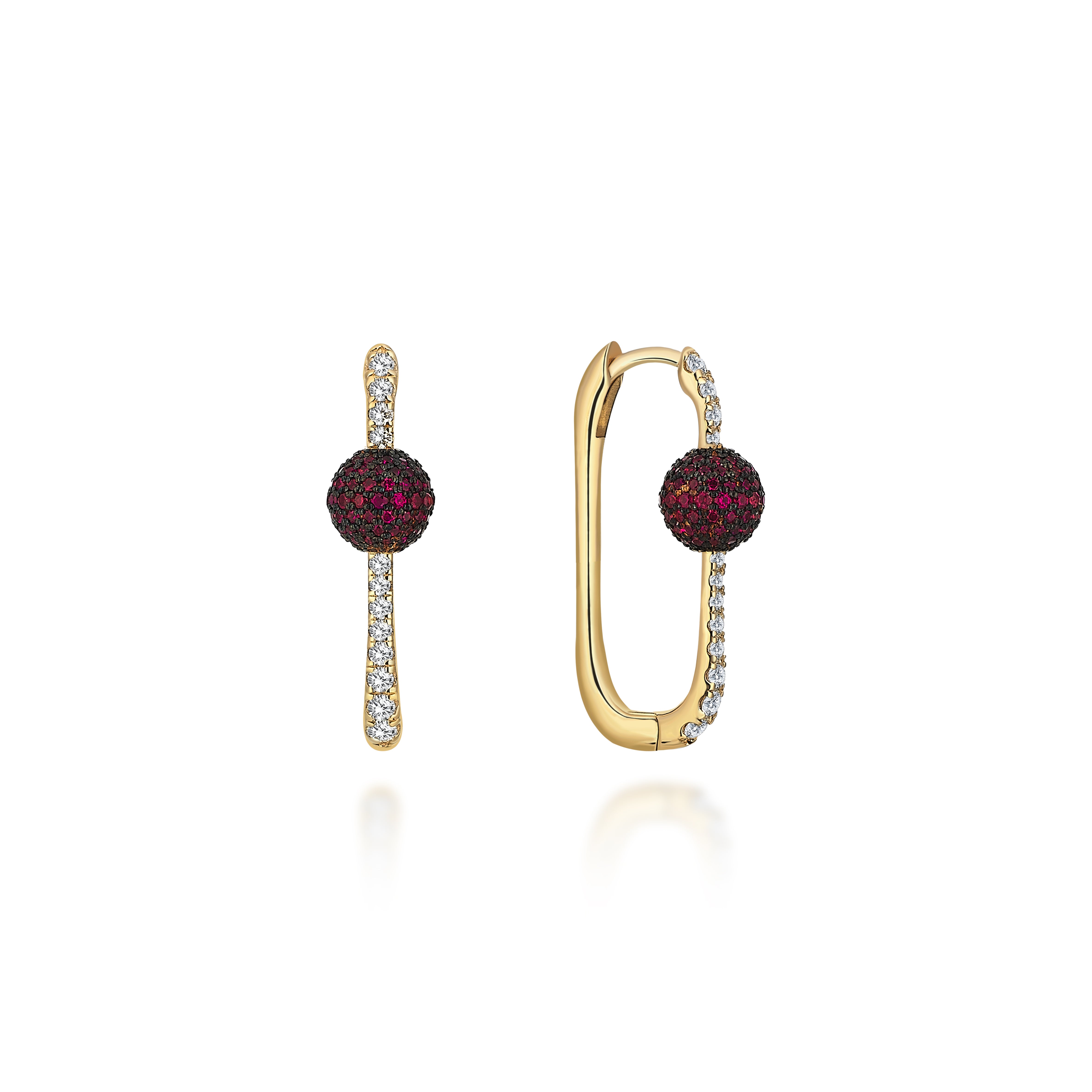 Yakut taşlı pırlanta küpe, güçlü kadınların stiline tutkulu bir dokunuş katmak için tasarlandı.