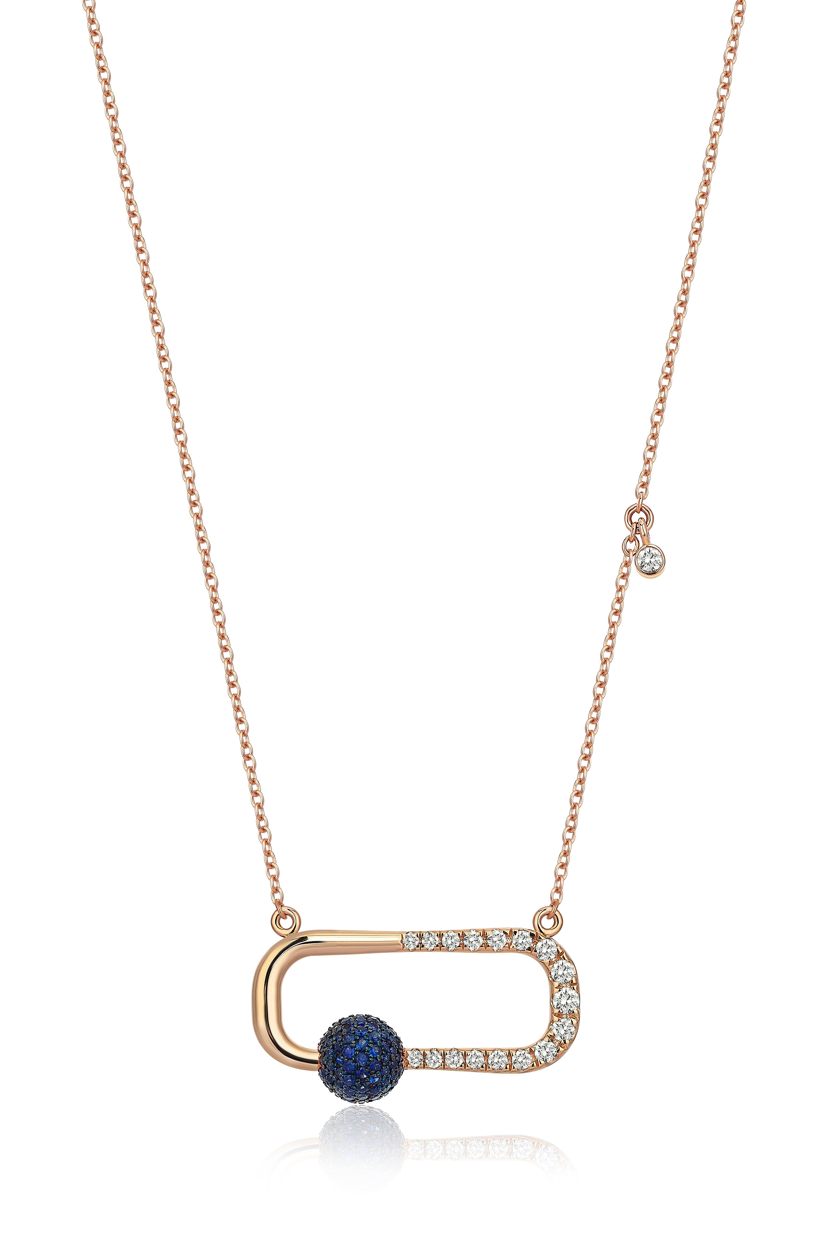 Zarif ama dikkat çekici formu sayesinde ister günlük kombinlere sofistike bir dokunuş katın, ister gece davetlerinde göz alıcı bir tamamlayıcı olarak kullanın. Mavi safirin asaletini ve pırlantanın ışığını buluşturan bu kolye, her stile uyum sağlayan modern ve zamansız bir takı deneyimi sunar.
