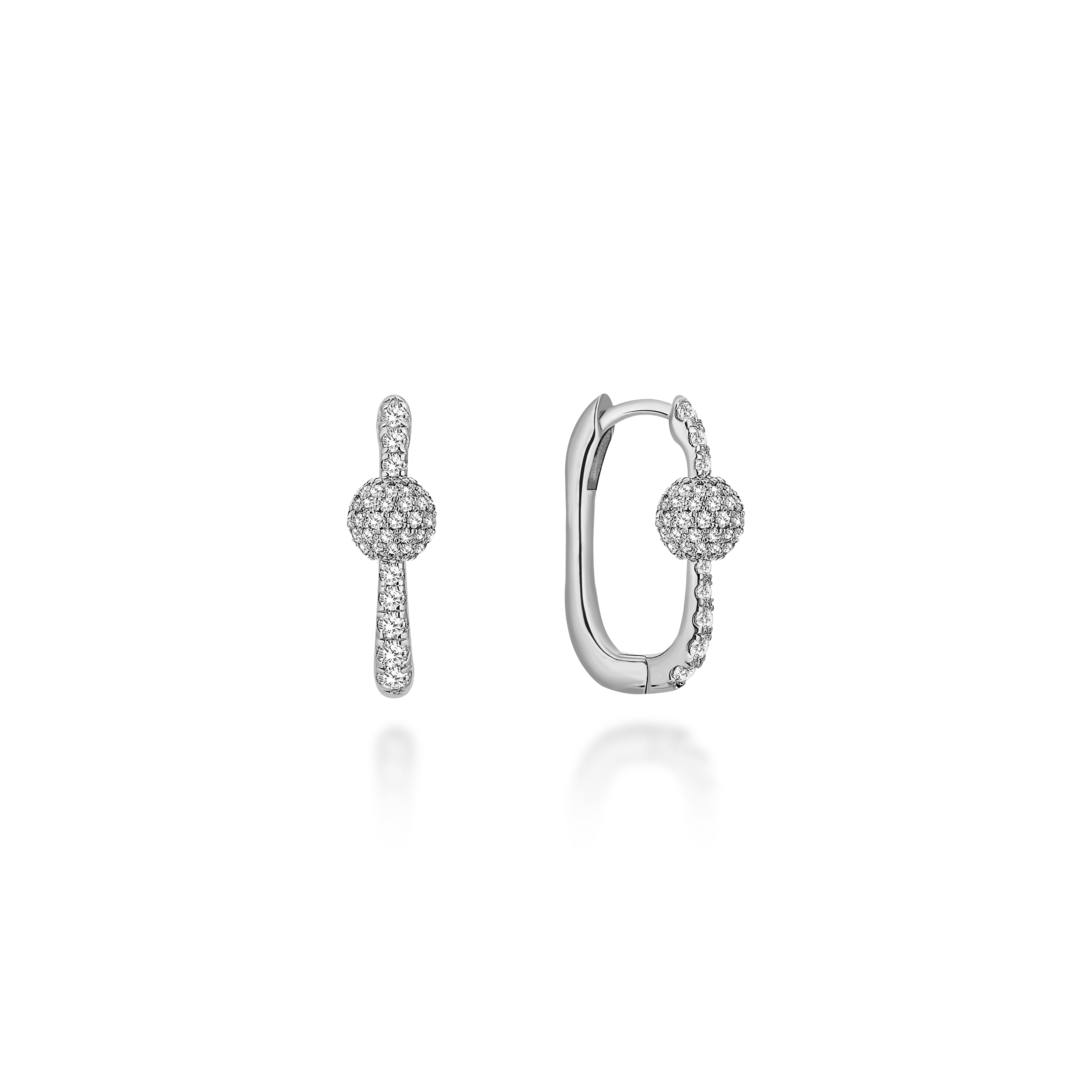 18 ayar beyaz altın üzerine titizlikle yerleştirilen pavé beyaz pırlantalar, göz alıcı bir ışıltı sunarken; tasarımın mimari çizgileri güçlü ve sade bir estetik ortaya koyuyor.