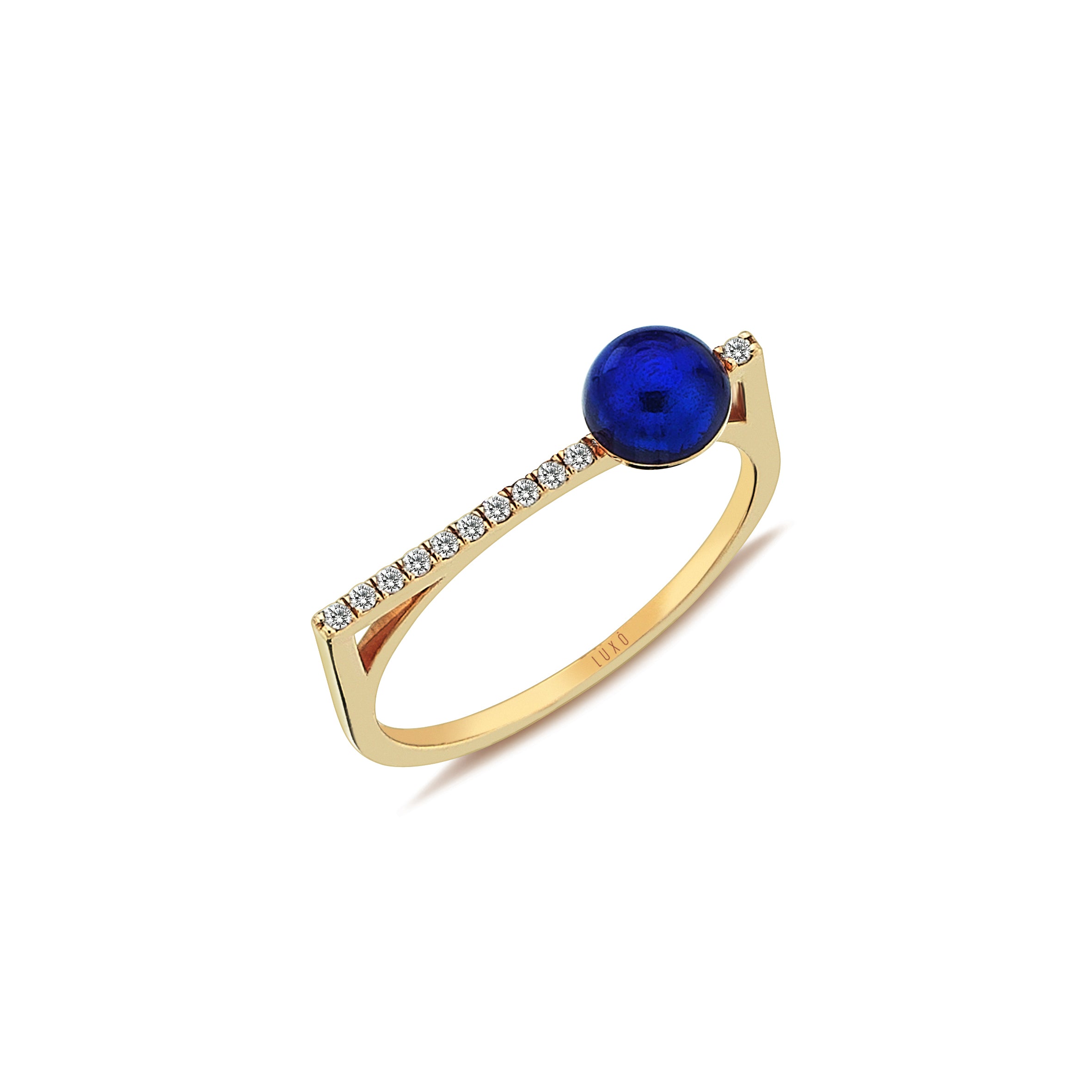 Minimal çizgilere sahip bu yüzük, hem gündelik kullanımda hem de özel anlarda şıklığınızı tamamlamak için ideal. Lacivert mineli pırlanta yüzük, modern tasarımı ve zamansız zarafeti bir araya getirerek stilinize sanatsal bir dokunuş katacak!