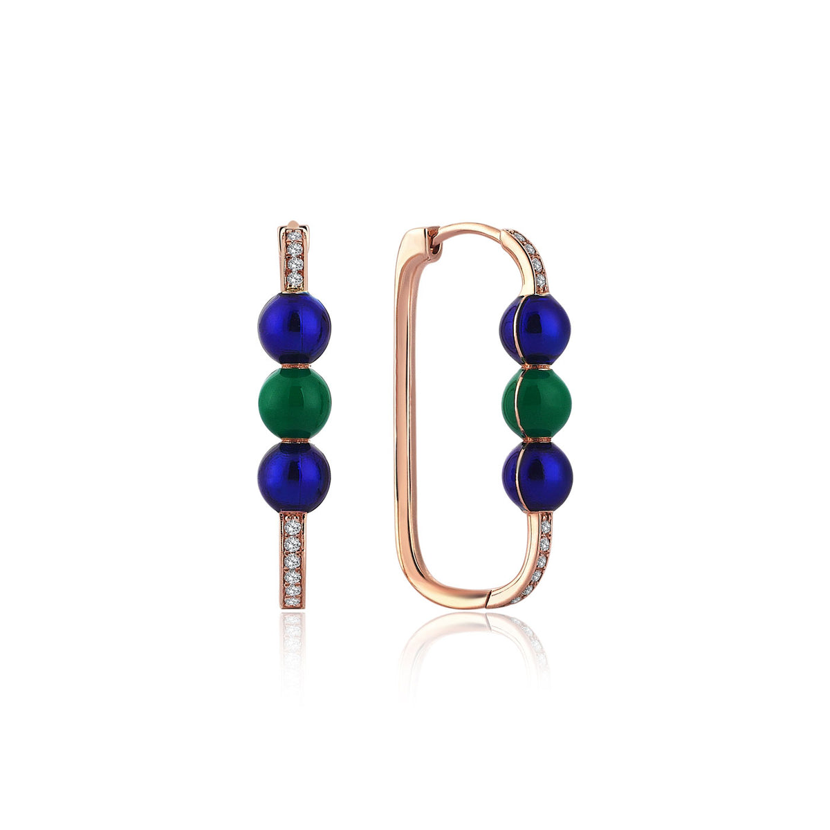Neomi Triple Koyu Yeşil ve Lacivert Üç Mineli Pırlanta Küpe