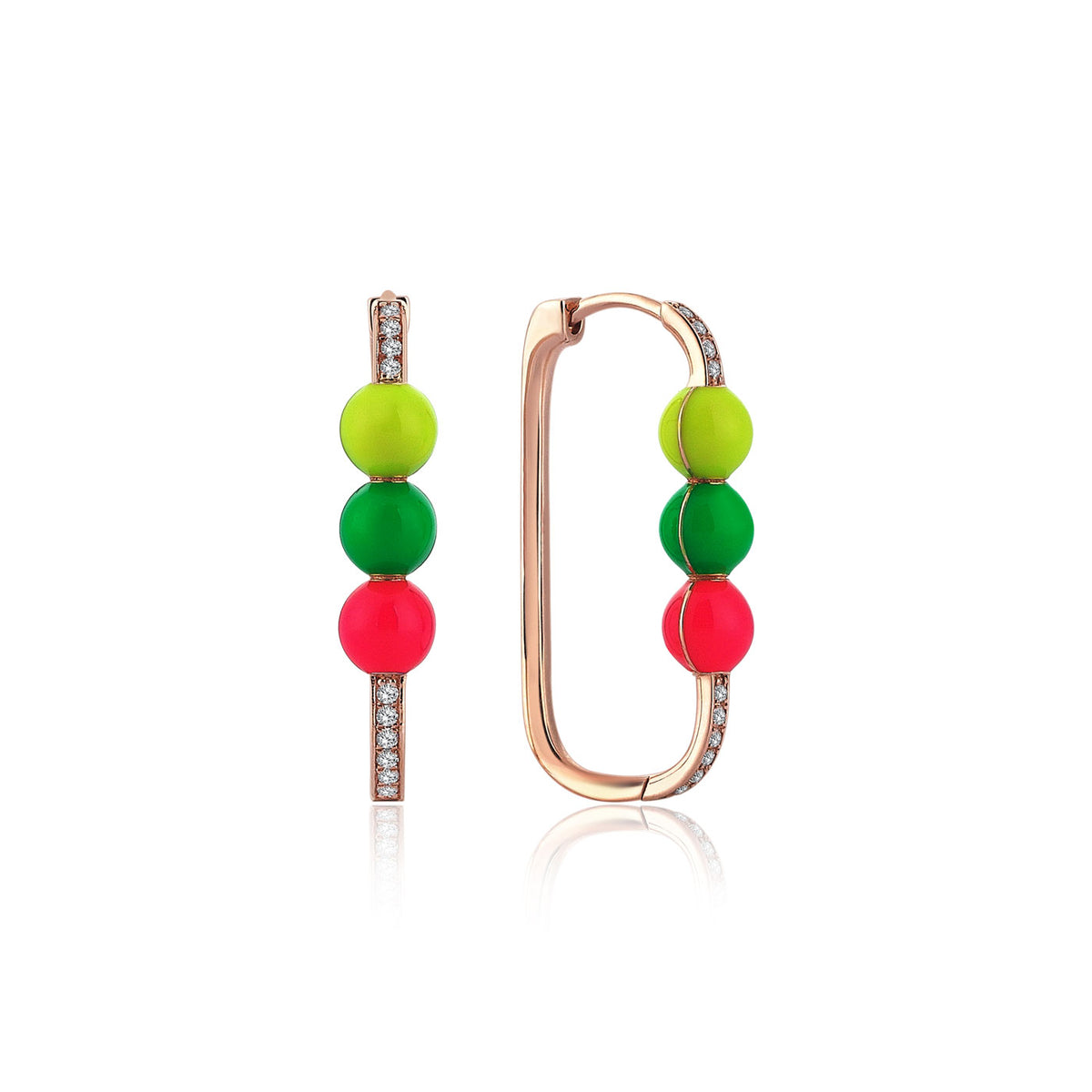 Neomi Triple Neon Pembe, Yeşil ve Sarı Mineli Pırlanta Küpe