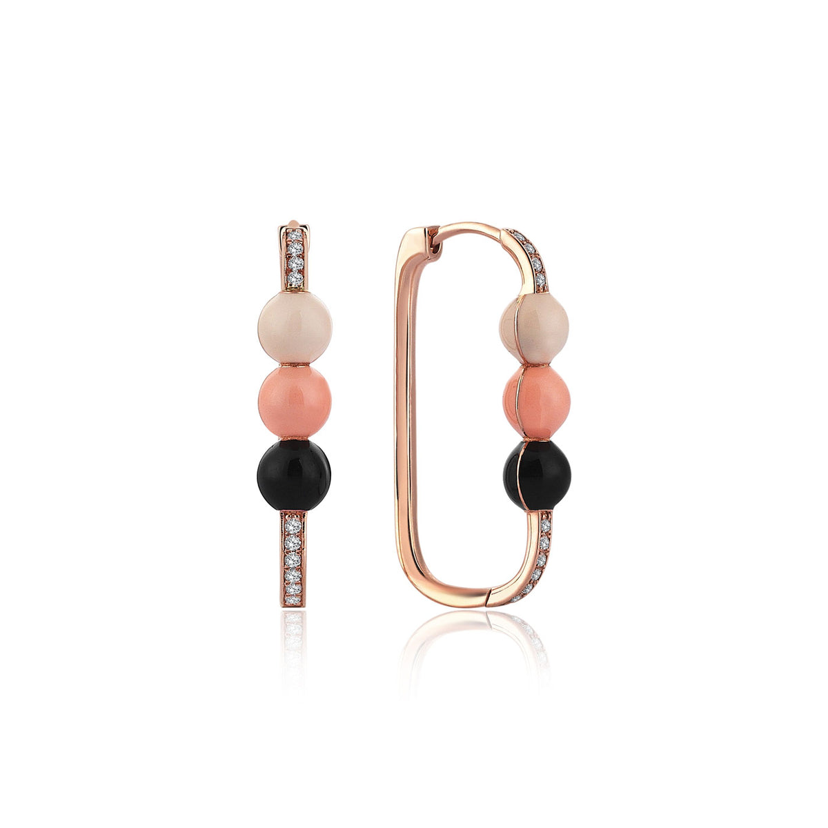 Neomi Triple Siyah, Açık Mercan ve Fildişi Mineli Pırlanta Küpe