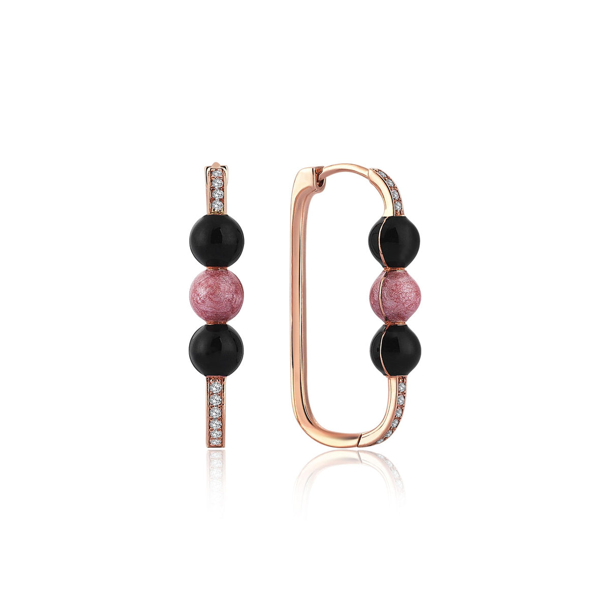 Neomi Triple Siyah ve Pembe Sedef Mineli Pırlanta Küpe