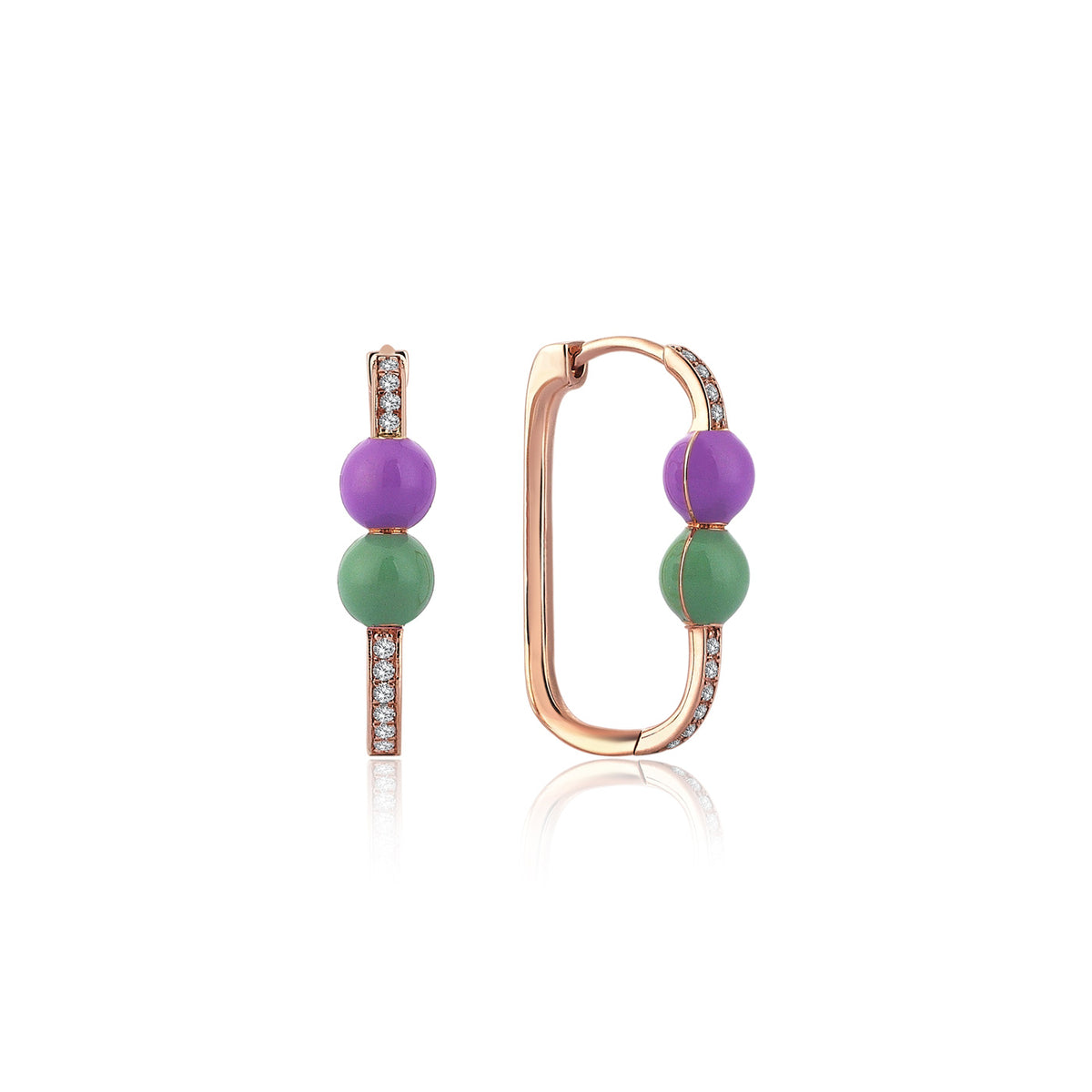 Neomi Twin Mint Yeşili ve Lila Mineli Pırlanta Küpe